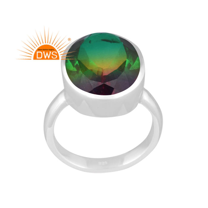 Anillo de Plata de Ley Fina de Diseño Hecho a Mano Natural Bio Mystic Doublet Cuarzo Piedra Preciosa Apilable Fabricante de Joyería