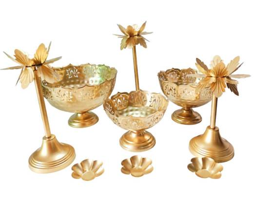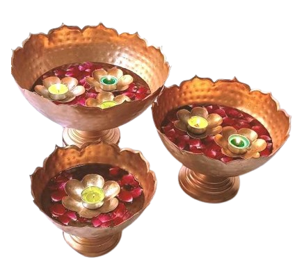 Juego de Cuencos Urli con Diseño Floral Hecho a Mano para Decoración del Hogar, Cuenco Martillado para Uso en Interiores, Cuenco para Flores Flotantes en Agua