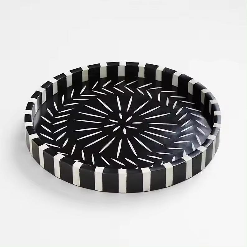 Bandeja de servir elegante con incrustaciones de hueso, diseño artesanal, tamaño personalizable, hecha con hueso natural en artesanías de la India.