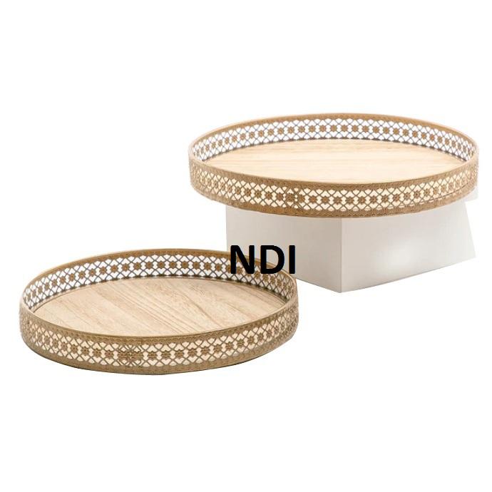 Juego personalizado de acabado antiguo de 2 bandejas multiusos para servir el desayuno, bandeja de Metal de grado comercial ecológica