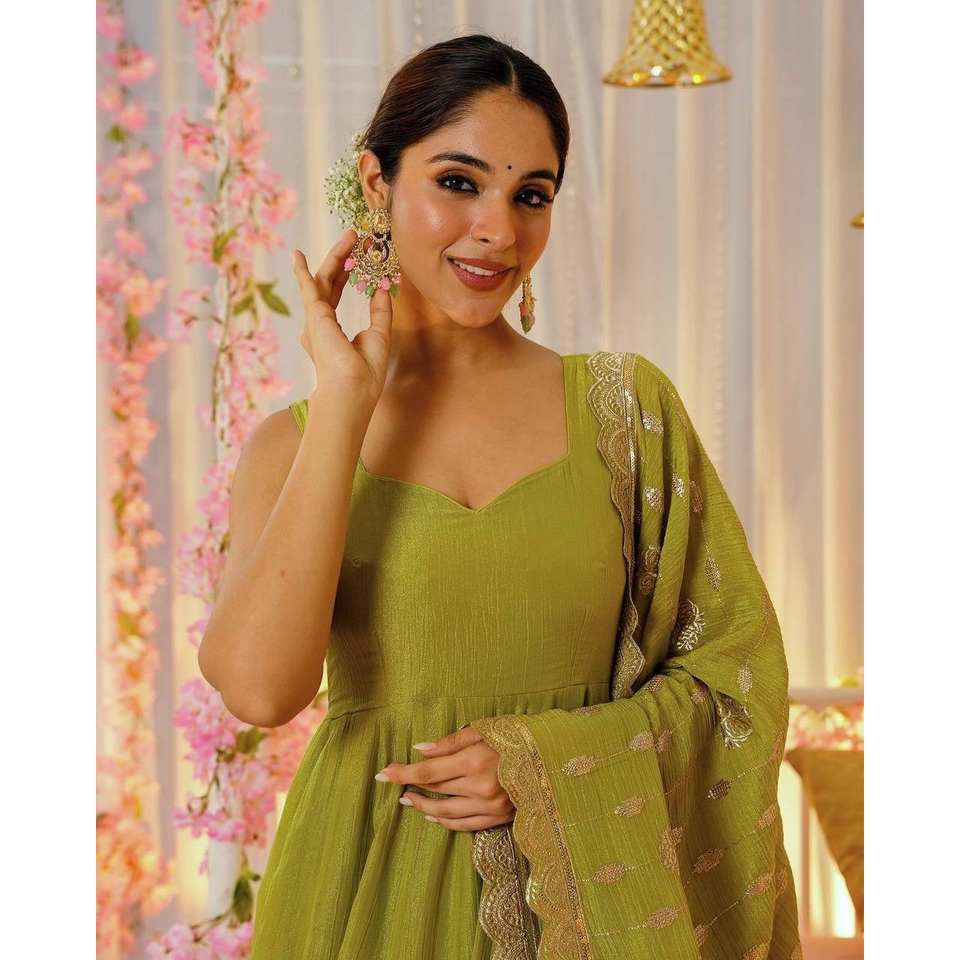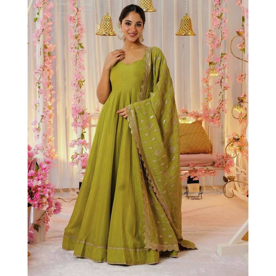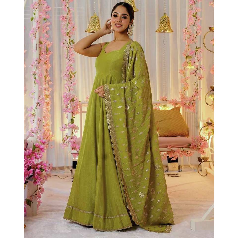 Vestido de Chifón Hecho a Mano con Diseño de Línea A, con Falda y Dupatta, Cintura Imperio, Estilo para Fiesta