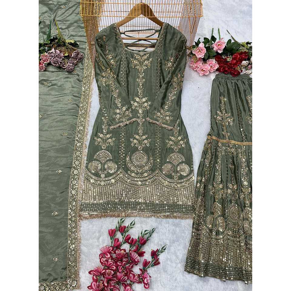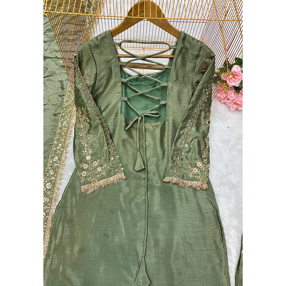 Conjunto de satén hecho a mano con diseño de línea A, top y pantalón con dupatta para fiestas, cintura natural