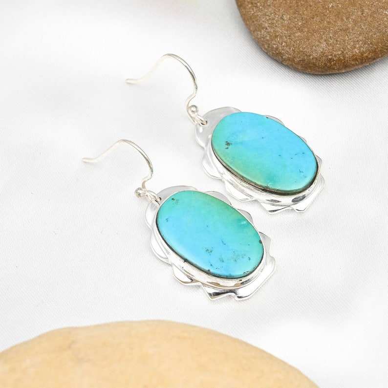 Pendientes de Plata de Ley 925 personalizados de diseñador hechos a mano, piedra preciosa turquesa natural, Piercing fino para mujer, bodas, compromisos