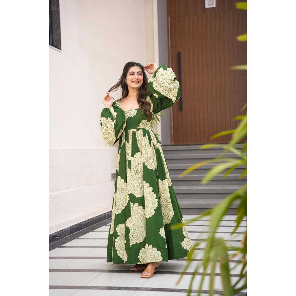 Vestido de Diseñador Hecho a Mano para Fiestas, Hermoso Estampado Floral Digital, Silueta en A, Cintura Imperio, Talla XS
