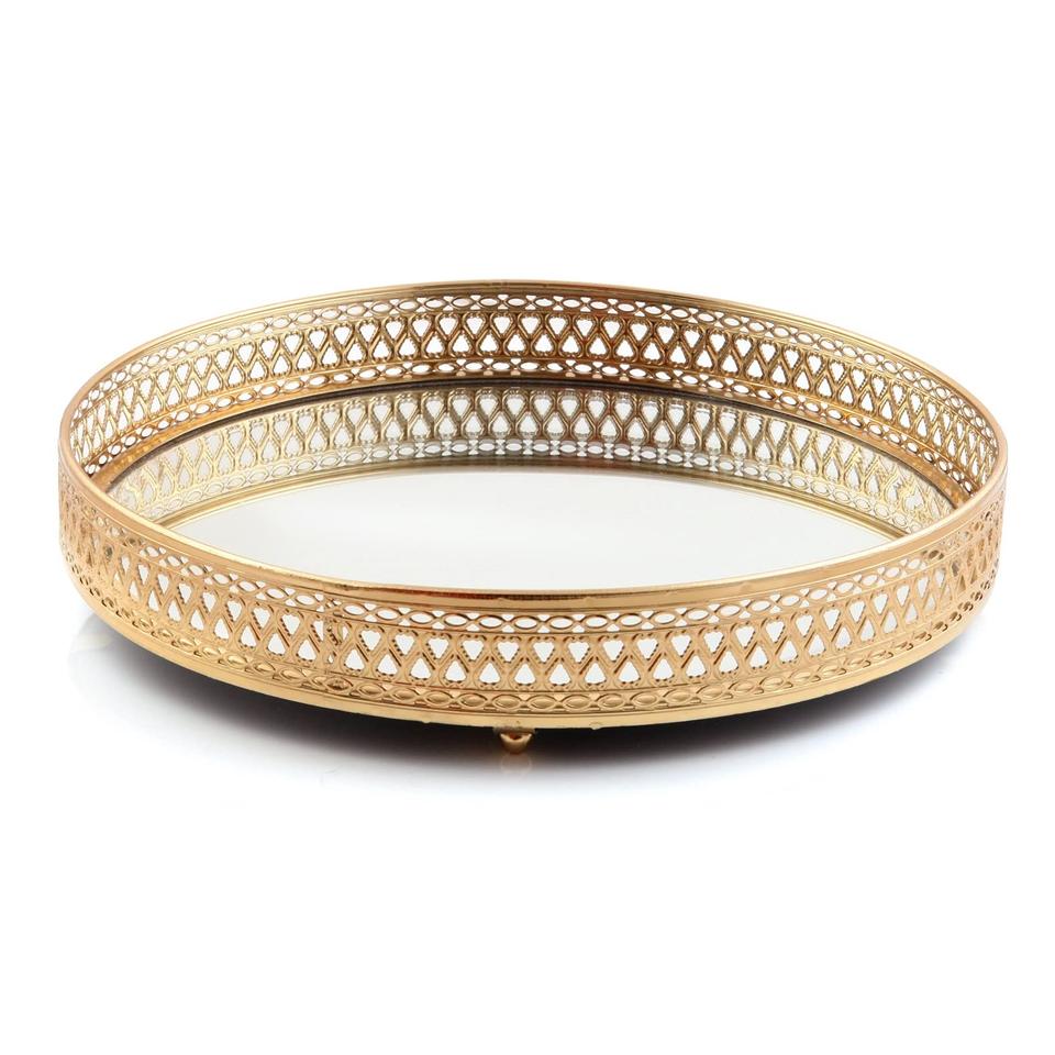 Plato de servicio de forma hexagonal de diseñador hecho a mano, bandeja de servicio de dos espejos de Color personalizado, plato de espejo de Metal moderno, precio bajo para el hogar