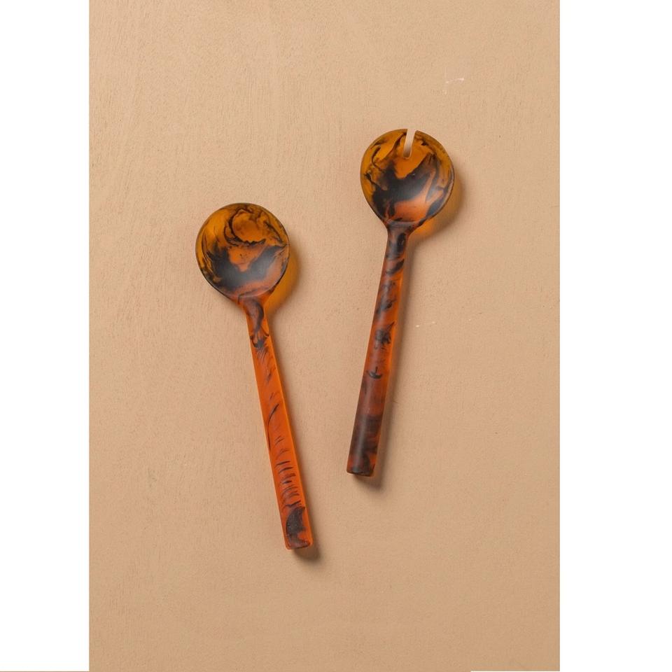 Juego de cubiertos de resina Multicolor de diseñador hecho a mano, servidor de ensalada sostenible desechable para uso en fiesta de cocina casera