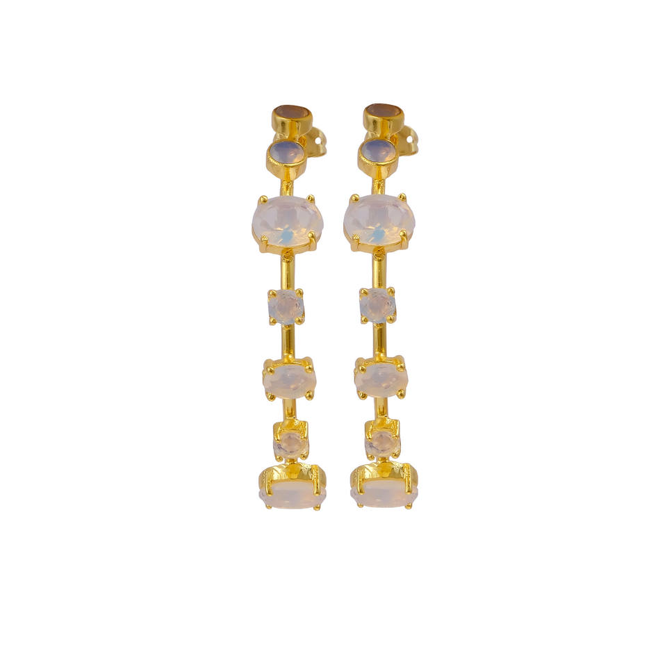 Pendientes de Botón de Cuarzo Opalita de Diseño Hechos a Mano con Baño de Oro para Mujer, Aros de Latón de Moda con Piedras Preciosas de Corte Ovalado
