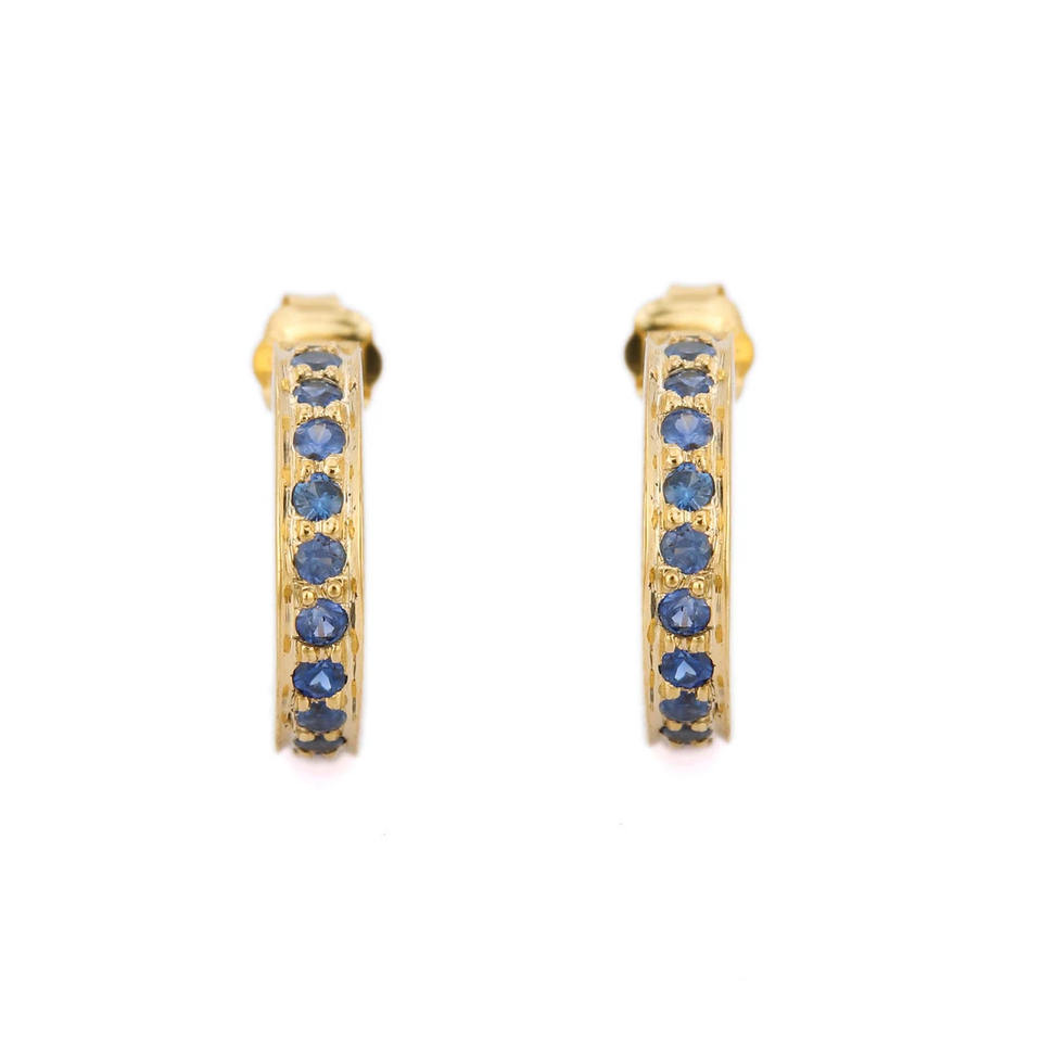 Pendientes de aro con gema de zafiro azul auténtico para mujer y niña, joyería fina hecha a mano, oro amarillo fino de 14K