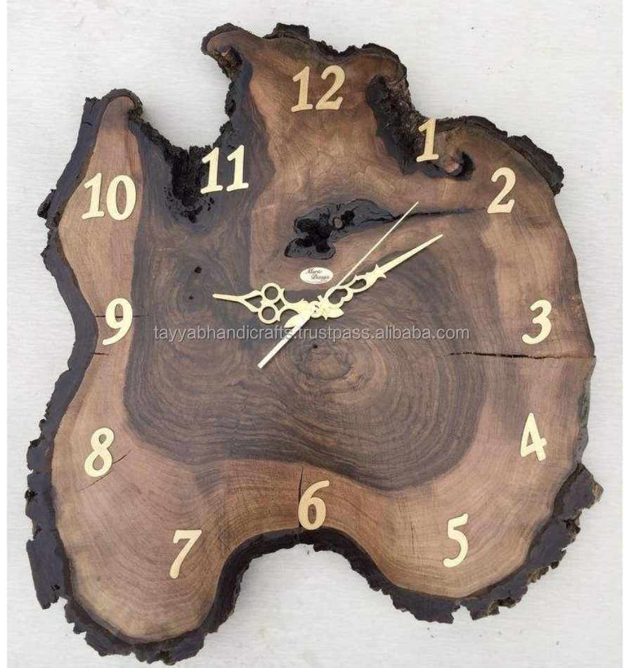Reloj de Pared de Madera con Diseño Industrial, Movimiento de Cuarzo, Visualización de Una Sola Cara con Aguja, Hecho a Mano por Tayyab Handicraft