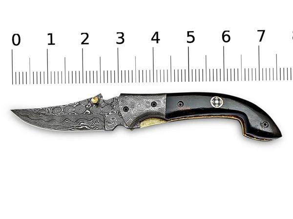 Cuchillo Plegable Hecho a Mano con Hoja Recta de Acero de Damasco y Mango de Madera de Nogal, Funda de Cuero, Utilitario DIY