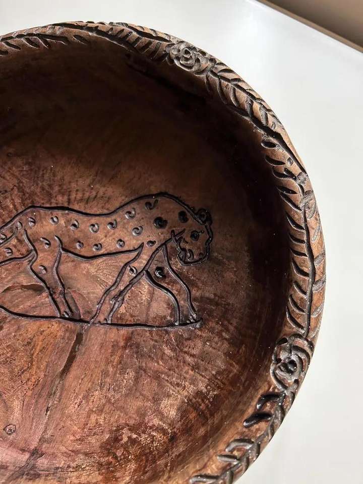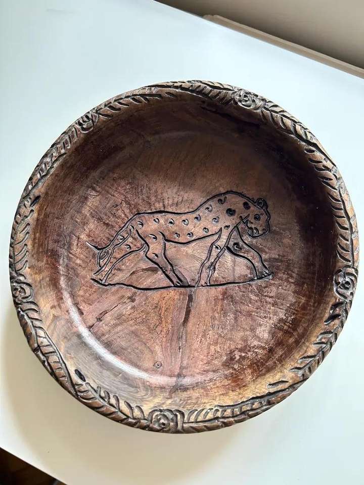Cuenco redondo de cuerno de buey marrón respetuoso con el medio ambiente hecho a mano, plato de ensalada grabado decorativo, desechable de estilo americano