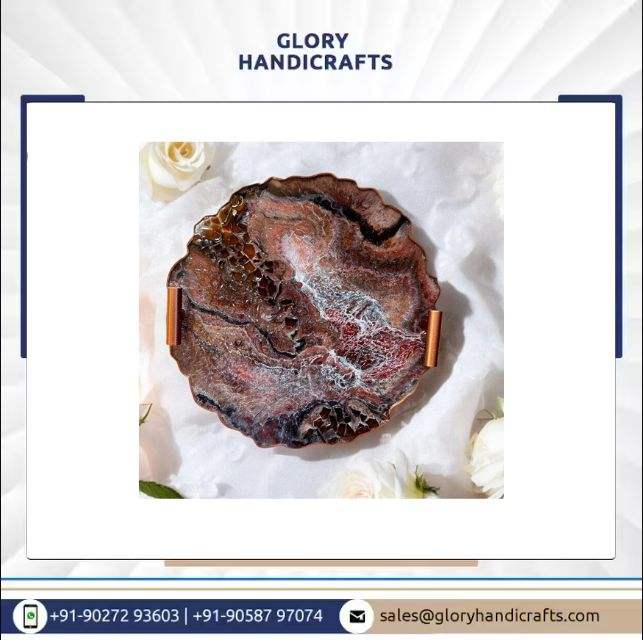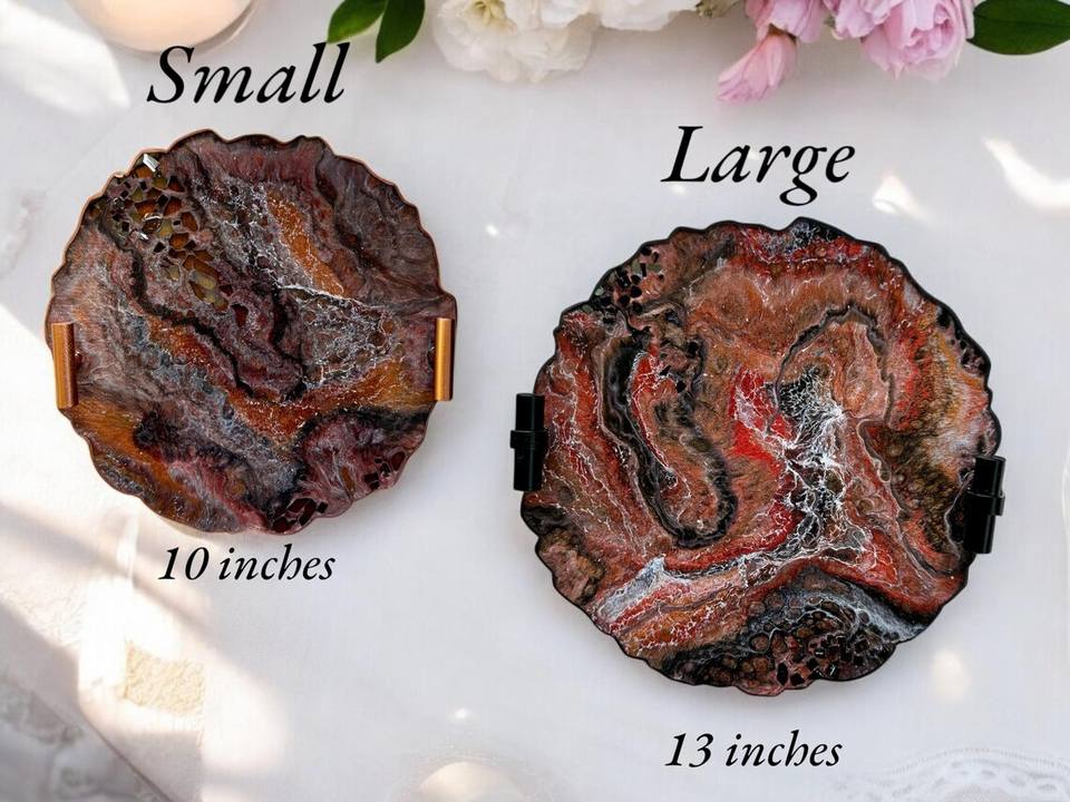 Bandeja de tocador de resina de Arte de geoda epoxi ecológica hecha a mano, colores de cobre de bronce negro para servir decorativo y regalos de inauguración de la casa