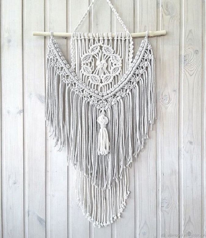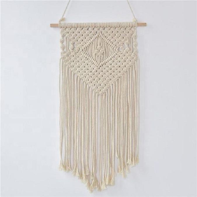 Macrame Wall Hanging made of cotton cords in hand knotted pattern