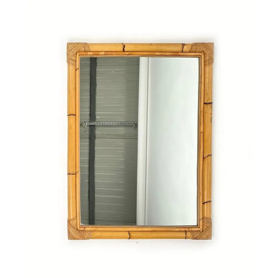 Espejo decorativo de ratán rectangular respetuoso con el medio ambiente hecho a mano Material natural enmarcado para uso doméstico y de oficina
