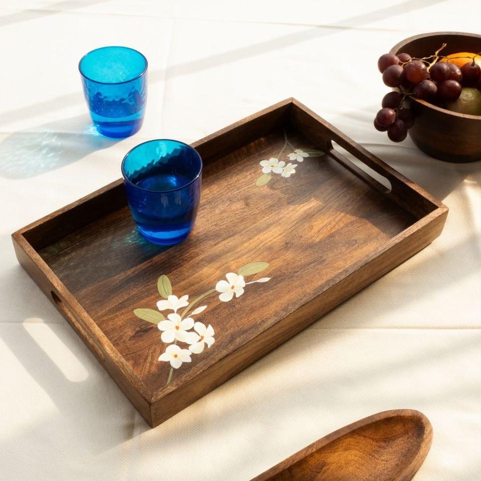 Bandeja de Madera Ecológica Hecha a Mano para Servir Alimentos en Casa, Restaurantes y Cafeterías - Apta para Lavavajillas, Diseño Moderno