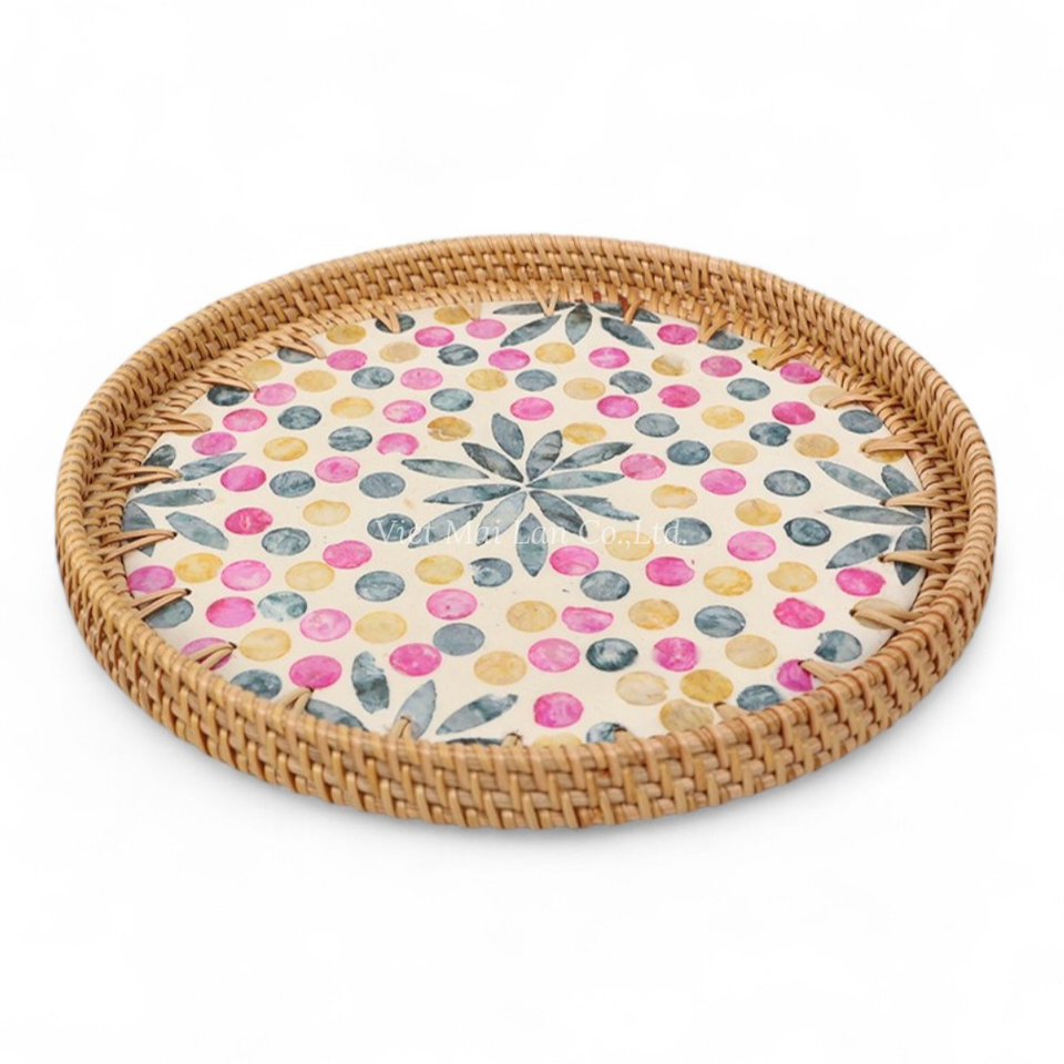 Bandeja de Servicio Hecha a Mano, Ecológica, de Ratán y Madreperla, para Servir Alimentos Diariamente y para la Mesa del Comedor