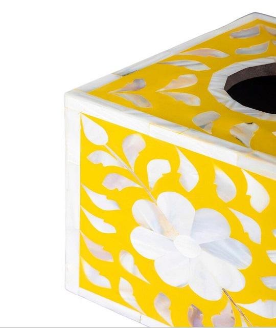 Caja de Pañuelos Elegante Hecha a Mano con Incrustaciones de Hueso, Porta Servilletas Multiusos de Lujo para Comedor, Cocina, Baño, Mesa, Almacenamiento del Hogar