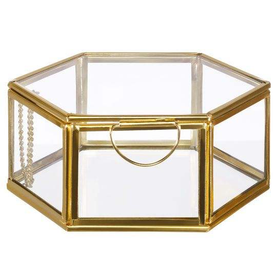 Joyero de cristal de latón Premium elegante hecho a mano forma rectangular para almacenar anillos preciosos pulseras accesorios pequeños