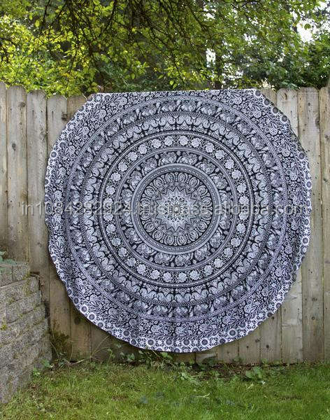 Tapices de mandala de elefante hechos a mano, tiro de playa redondo con patrón impreso, hecho en India
