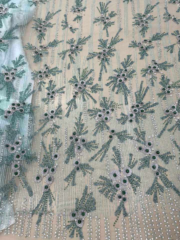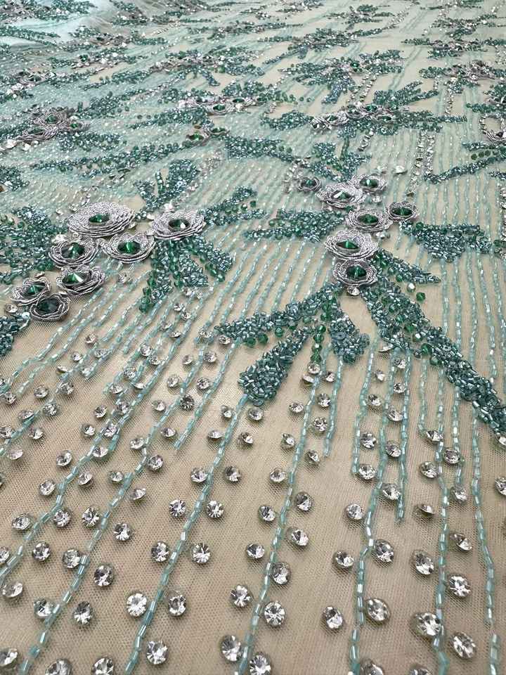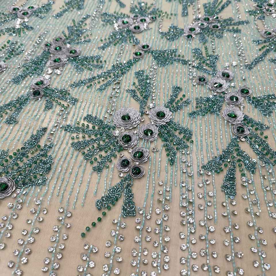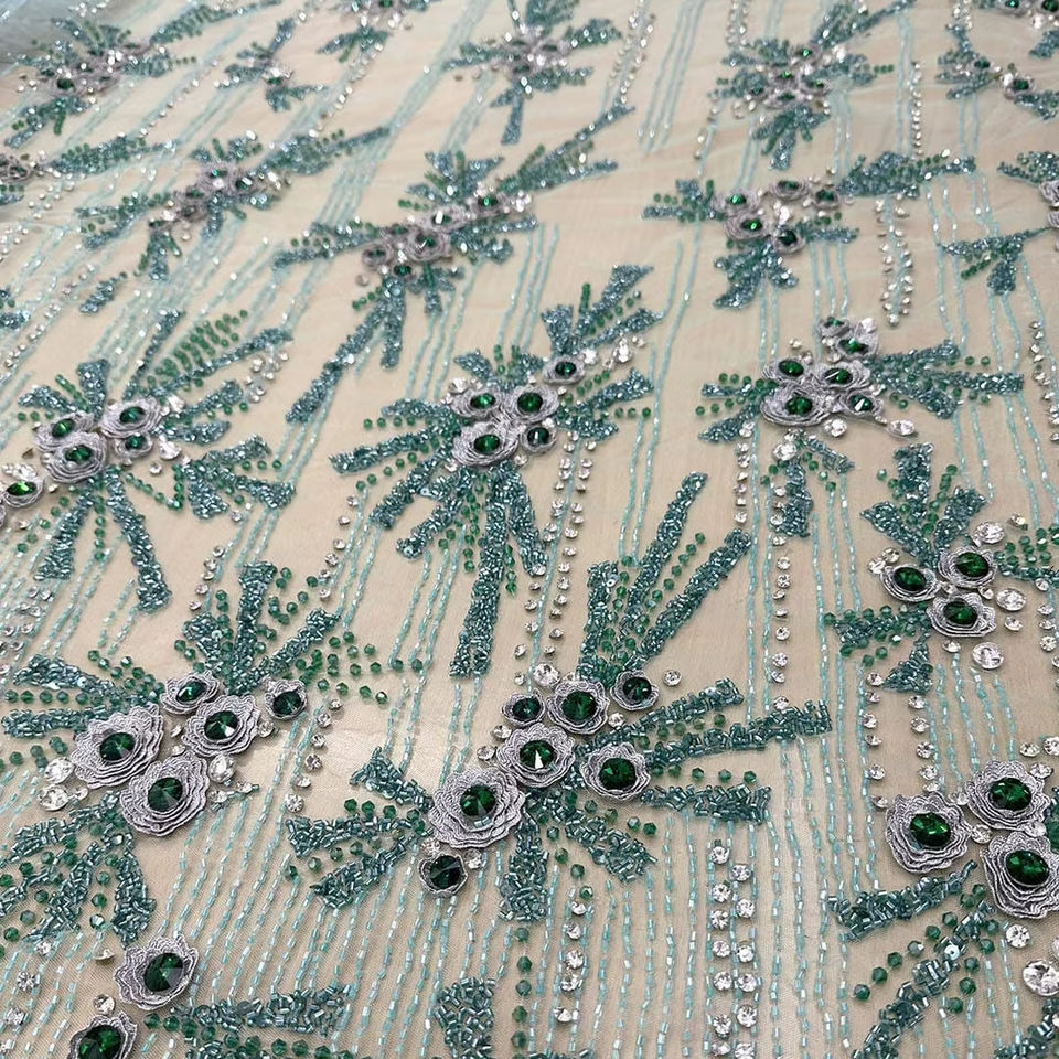 Tela de Encaje de Lujo con Cuentas Bordadas a Mano, 100% Poliéster, Ancho Personalizado para Vestidos - Precio Directo de Fábrica al por Mayor