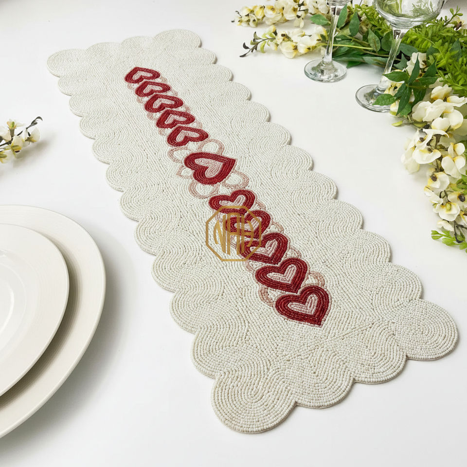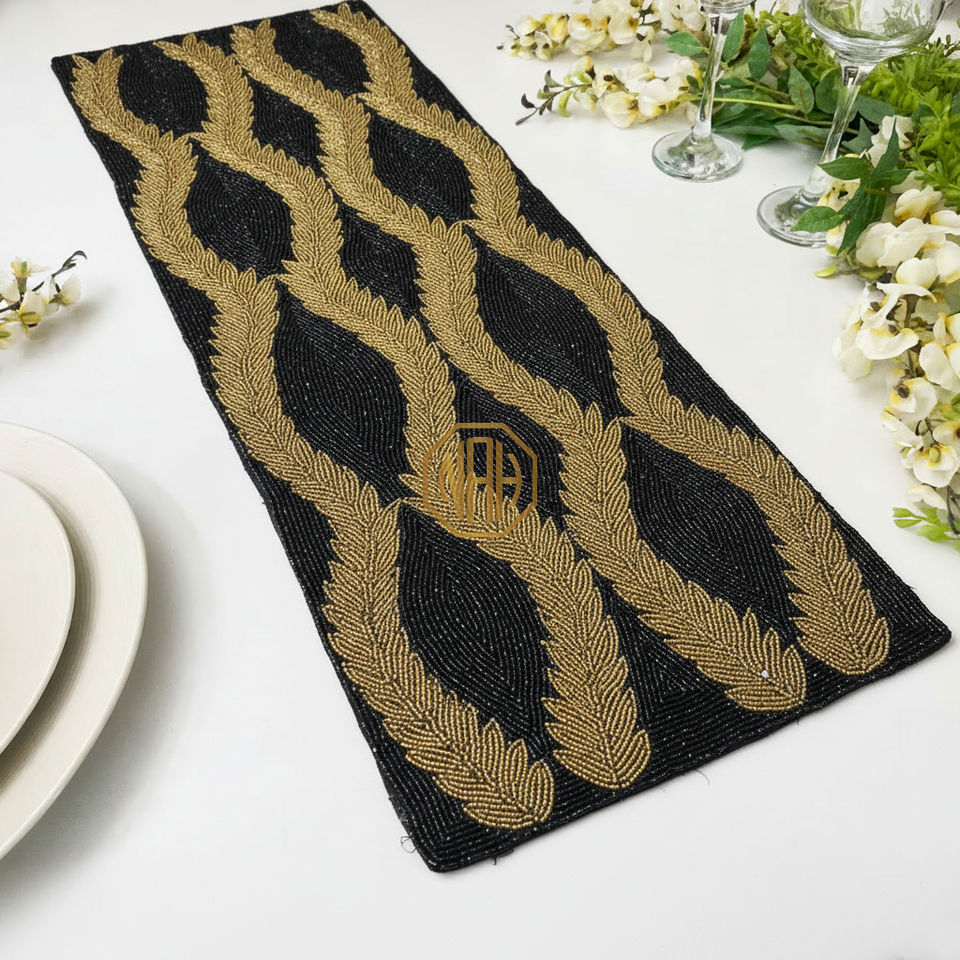 Camino de Mesa Bordado a Mano con Cuentas, Mantel Individual, Longitud Personalizada, OEM, Exportación