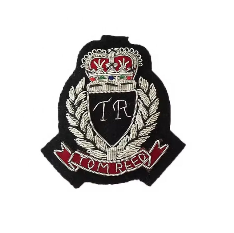 Parches de Tela Bordados a Mano con Hilo de Bullion, Hechos a Medida, Insignias Bordadas en 3D para Uniformes al por Mayor, Tamaño Personalizado