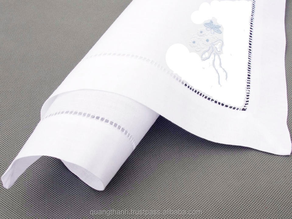 Servilleta de lino bordada hecha a mano, servilleta desechable de algodón Hemstitch, técnica simple hecha a mano, uso doméstico en avión, ocasión de boda