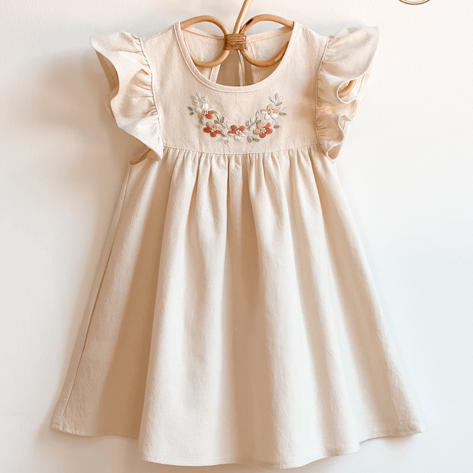 Vestido de lino suave bordado a mano para niñas, estilo informal para el primer cumpleaños de niños pequeños, OEM hecho en Vietnam