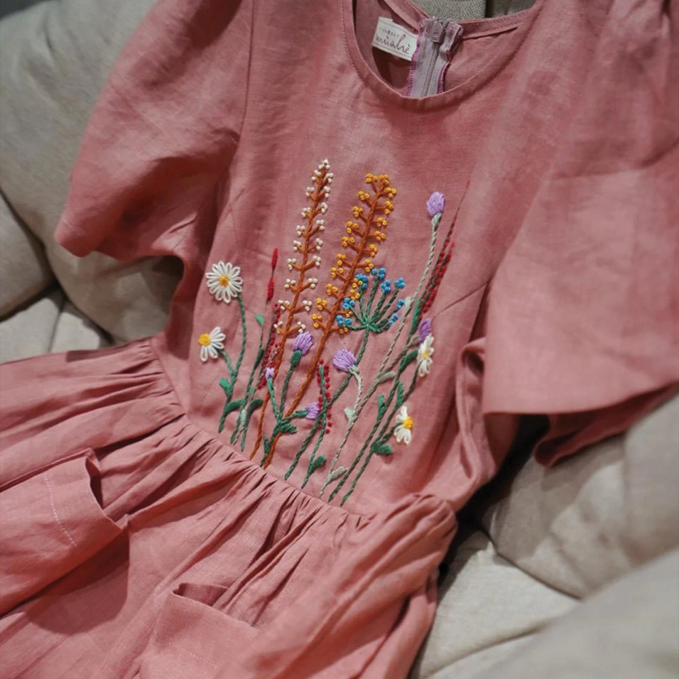 Vestido de lino suave bordado a mano para niñas, estilo informal para el primer cumpleaños de niños pequeños, OEM hecho en Vietnam