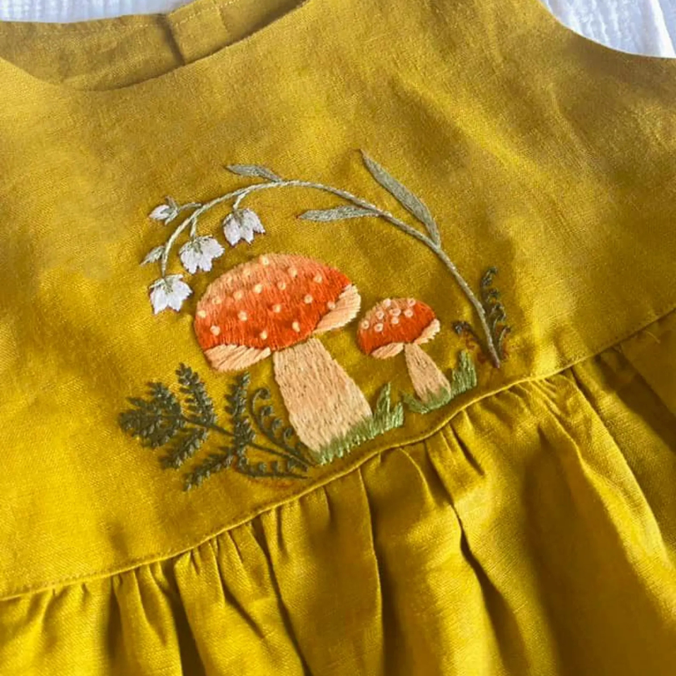 Vestido de lino suave bordado a mano para niñas, estilo informal para el primer cumpleaños de niños pequeños, OEM hecho en Vietnam