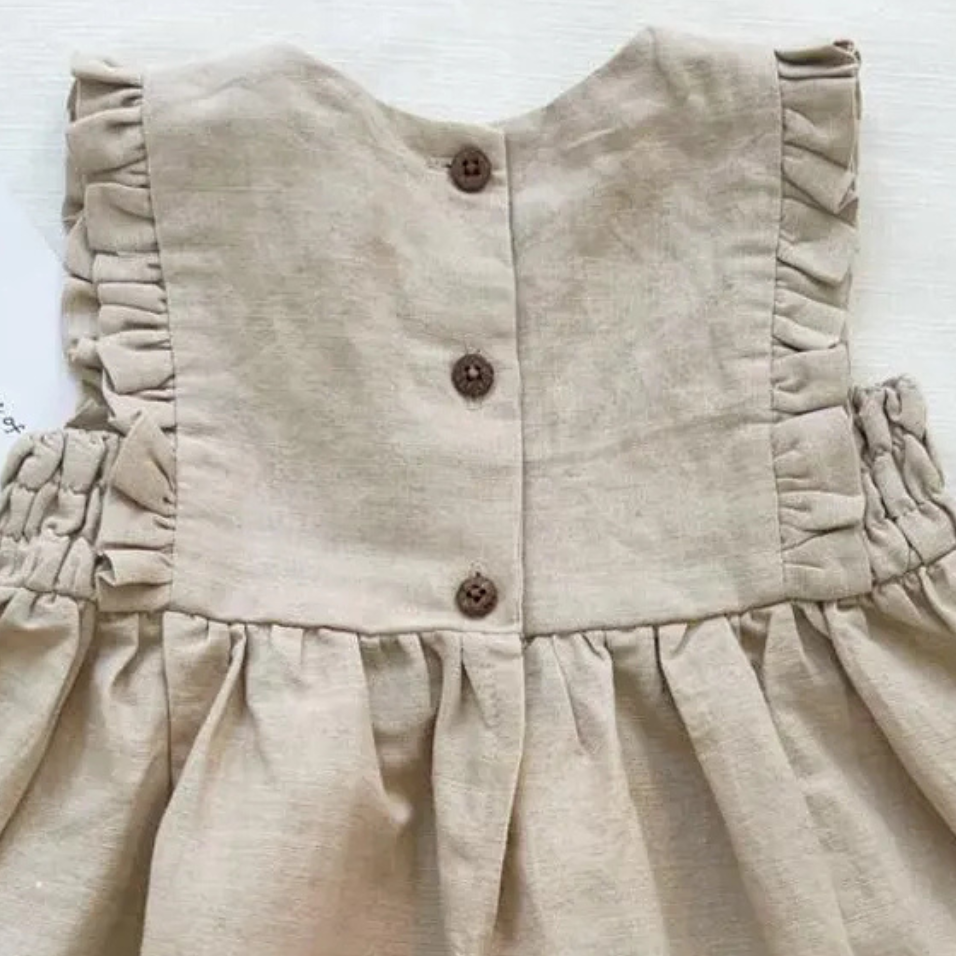 Vestido de lino suave bordado a mano para niñas, estilo informal para el primer cumpleaños de niños pequeños, OEM hecho en Vietnam
