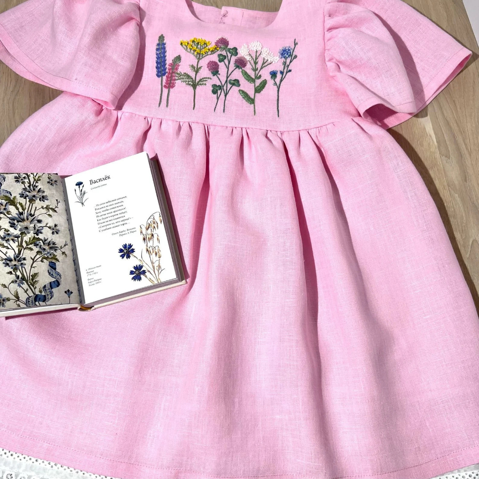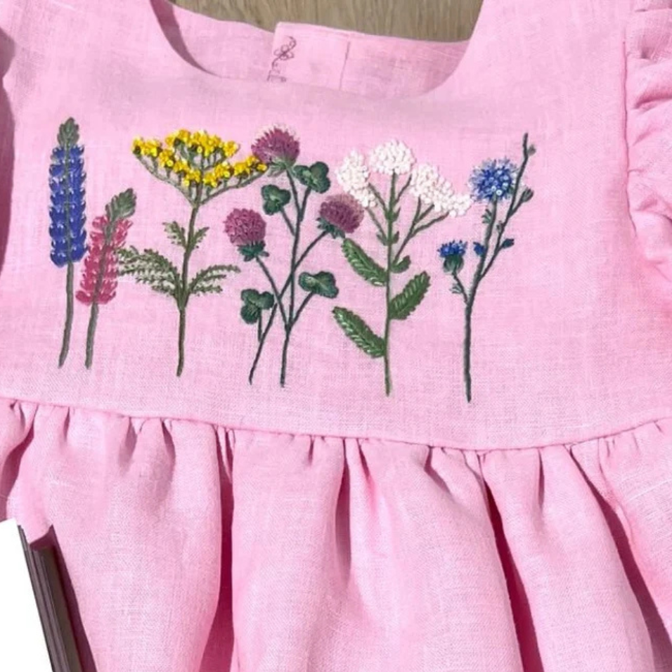 Vestido de lino suave bordado a mano para niñas, estilo informal para el primer cumpleaños de niños pequeños, OEM hecho en Vietnam