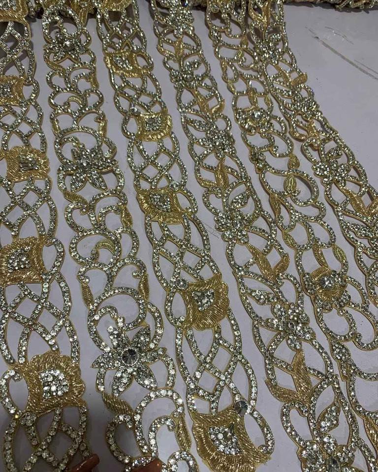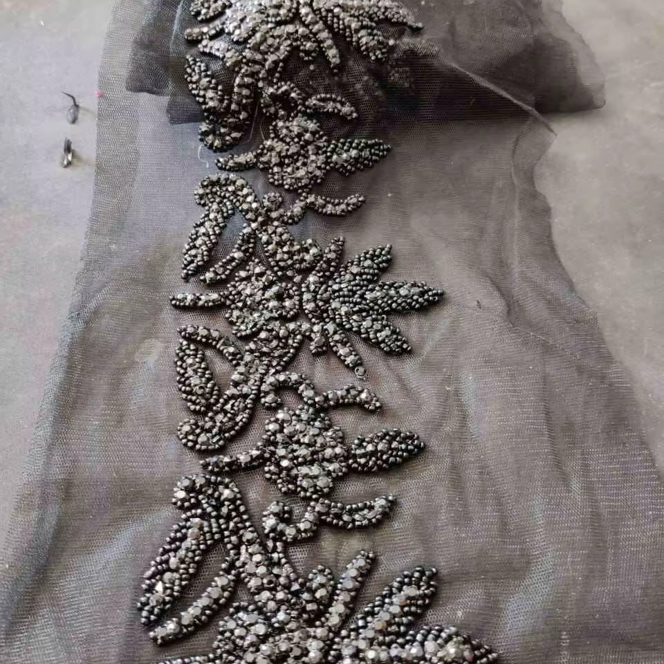 Ribetes de encaje bordados a mano con cuentas para decoración de trajes, suministro al por mayor para exportación