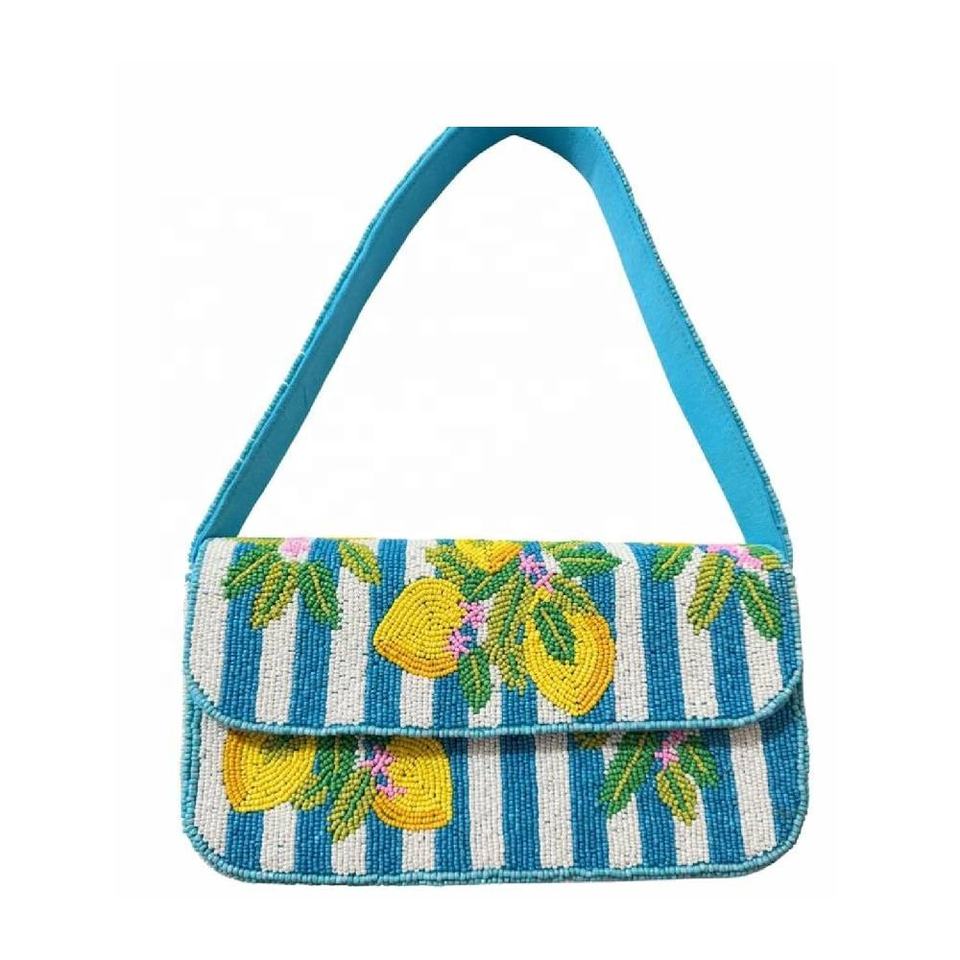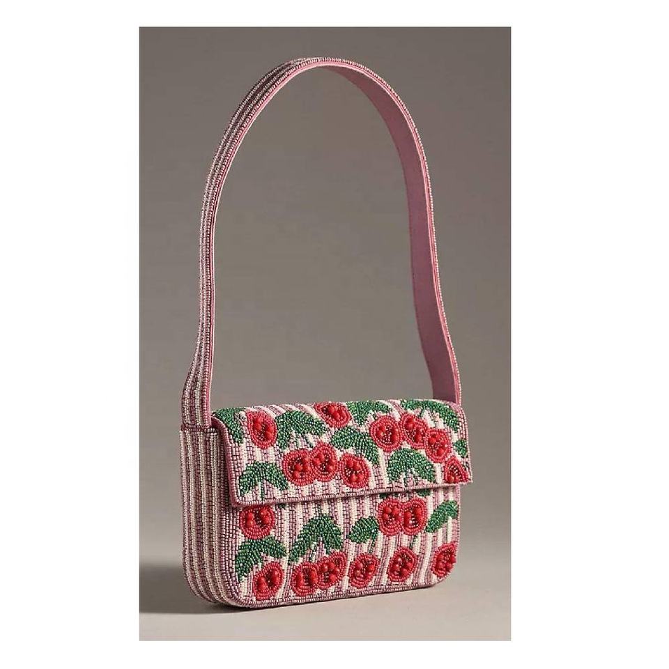 Bolso de Hombro Bordado a Mano con Diseño de Frutas y Cuentas para Mujer, para Llevar Teléfono, Llaves, Tarjetas y Accesorios de Maquillaje