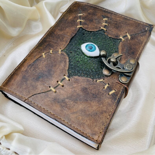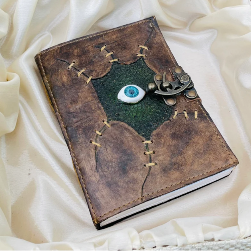 Nombre del producto:Diario de cuero cosido de mal de ojo, libro de hechizo de 7x5 pulgadas y grimoire