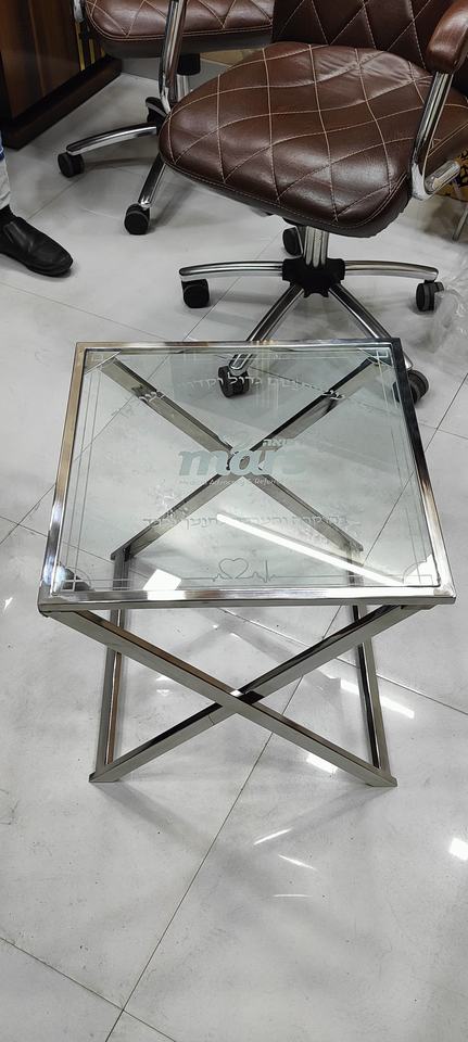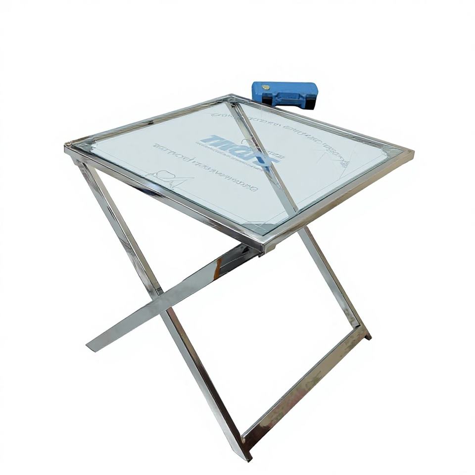 Mesa Auxiliar de Acero Inoxidable Hecha a Mano con Envío Exprés, Mesa de Té con Vidrio Tuffan, Mesa de Salón, Mesa Metálica de Estilo Occidental
