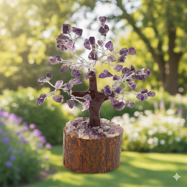 Hecho a mano Feng Shui pequeño árbol de piedra de amatista 60 cuentas Chip decoración de cristal para dormitorios piedra preciosa perfecta promover un sueño reparador
