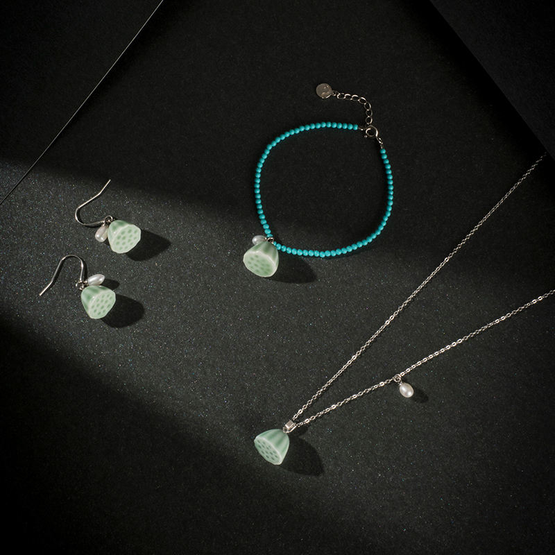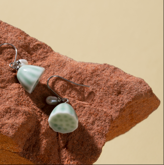 Pendientes colgantes de loto fino hechos a mano de cerámica con perlas de agua dulce 925 ganchos de plata diseño elegante
