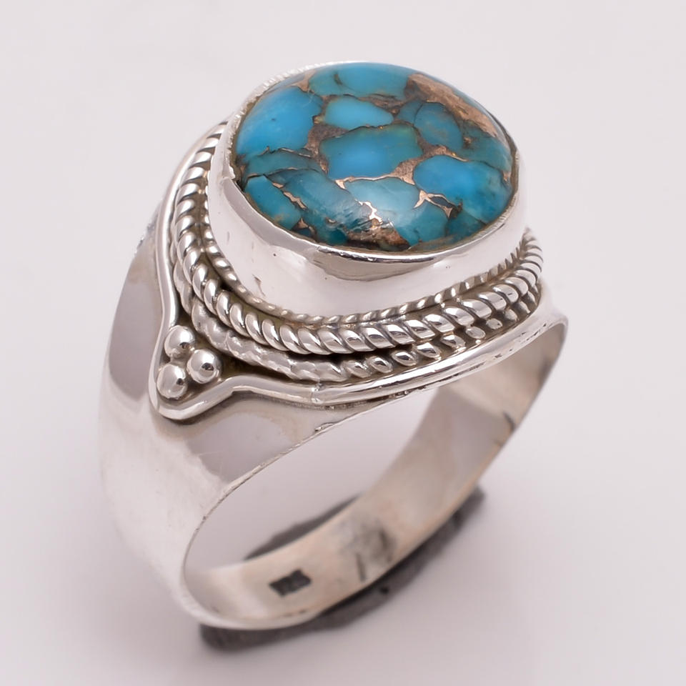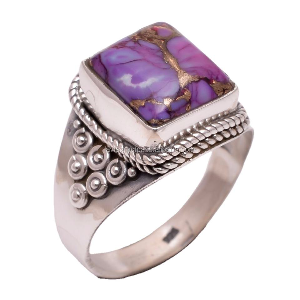 Anillos de bodas de plata fina hechos a mano, joyería de piedras preciosas turquesa de cobre púrpura Natural personalizada, fabricante exportador experto clásico