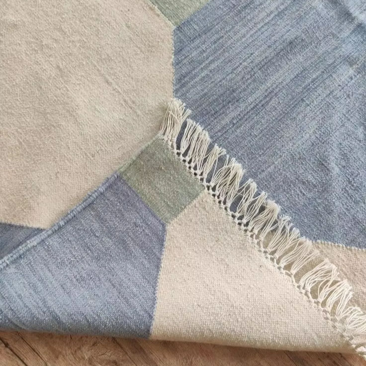 Alfombra Kilim Hecha a Mano de Lana Dhurrie con Diseño Geométrico Oriental, Ecológica, Antideslizante, Tamaño Personalizado para Dormitorio