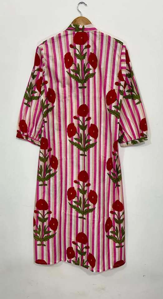 Túnica Kurta de Algodón con Estampado Floral Hecha a Mano: Kimono Boho para Estar en Casa