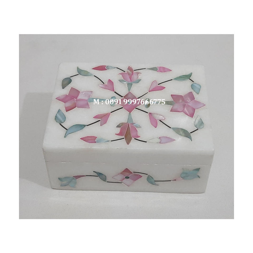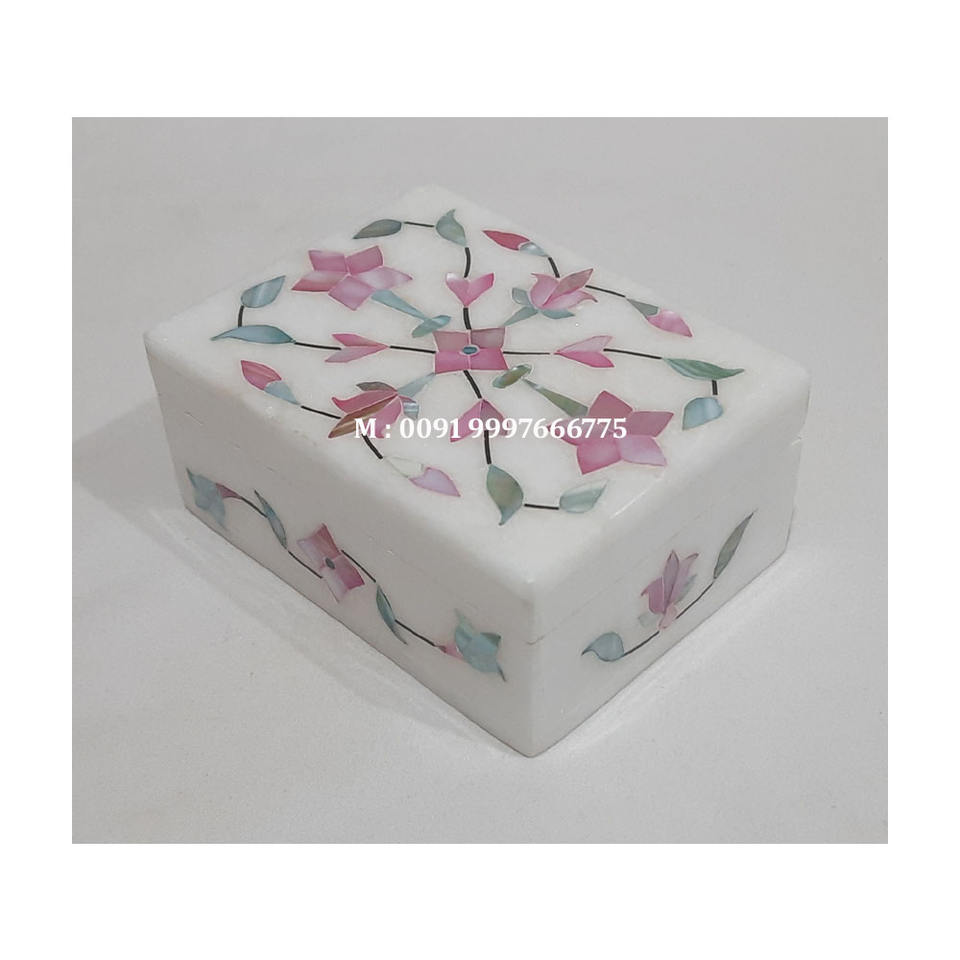 Caja de Joyería Rectangular Hecha a Mano con Incrustaciones Florales de Mármol Blanco Natural y Nácar, Ideal para el Día de Acción de Gracias