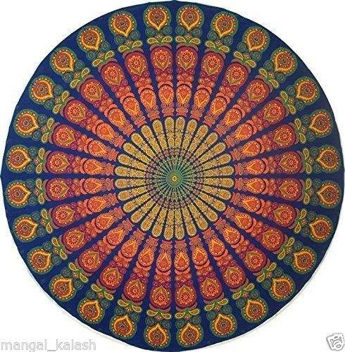 Mantel de algodón con diseño de Mandala Floral hecho a mano, toalla de playa, hermoso arte textil redondo de India para dormitorio, sala de estar, boda