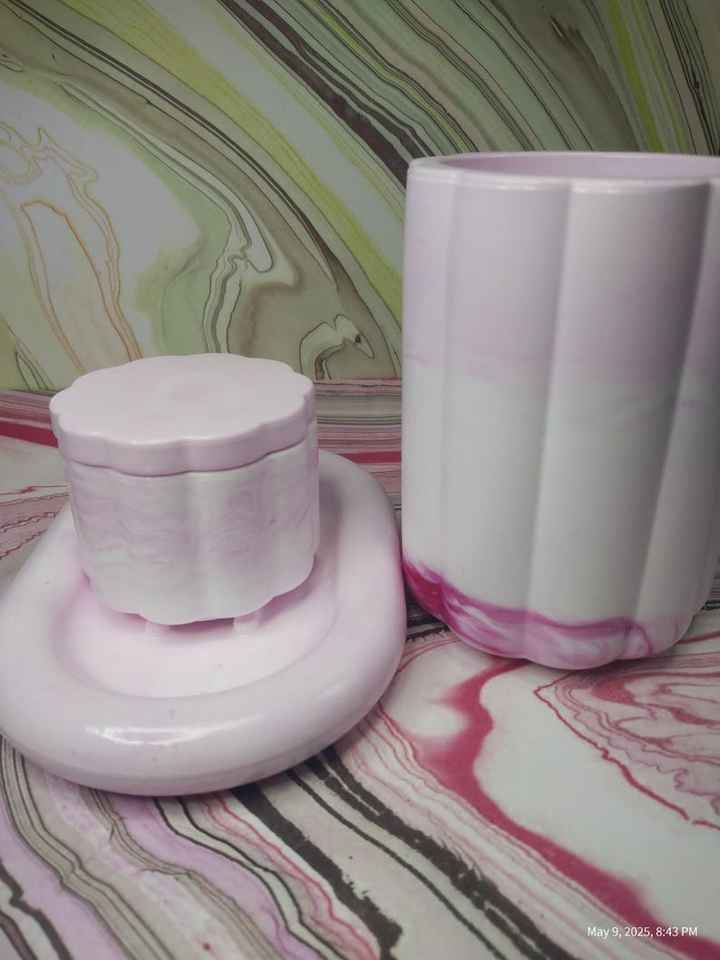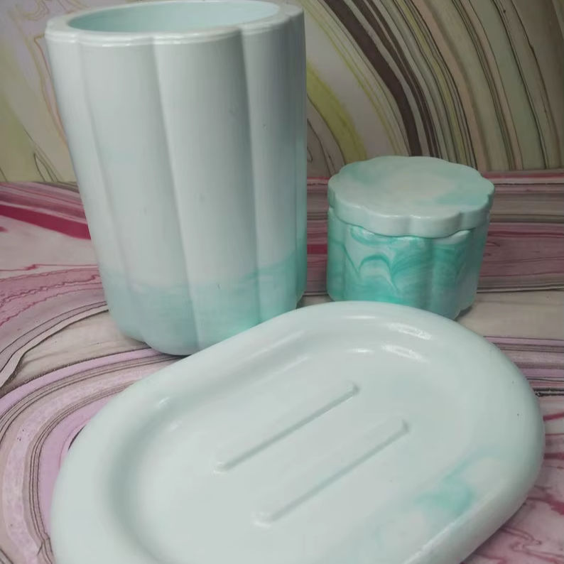 Juego de Accesorios de Baño de Resina Floral Ecológica Hechos a Mano, Colección de 3 Piezas para Encimera