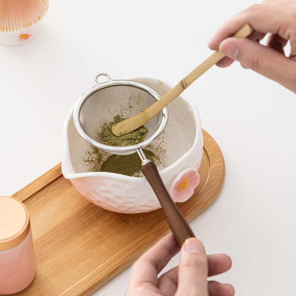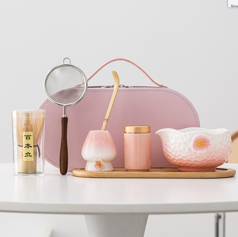 Juego de 8 piezas de cuencos de cerámica hechos a mano con diseño floral para matcha, bandeja y soporte para Chasen, estilo japonés para ceremonia del té Bancha, transfronterizo