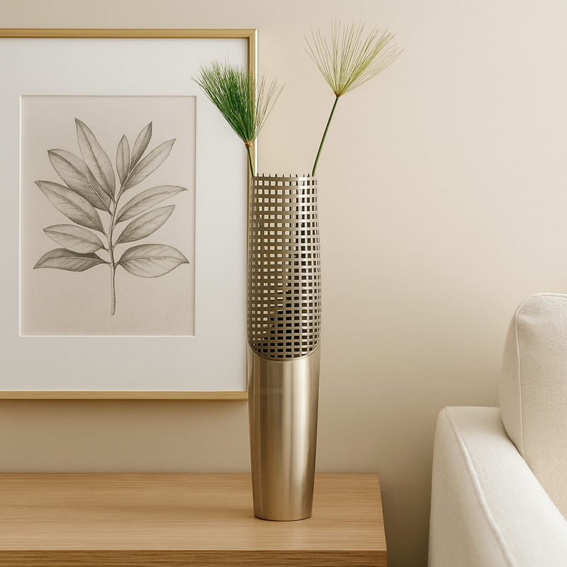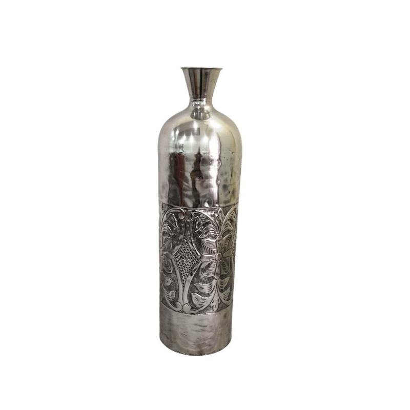 Jarrón de Flores Hecho a Mano con Acabado Rústico de Aluminio, Centro de Mesa Navideño, Maceta