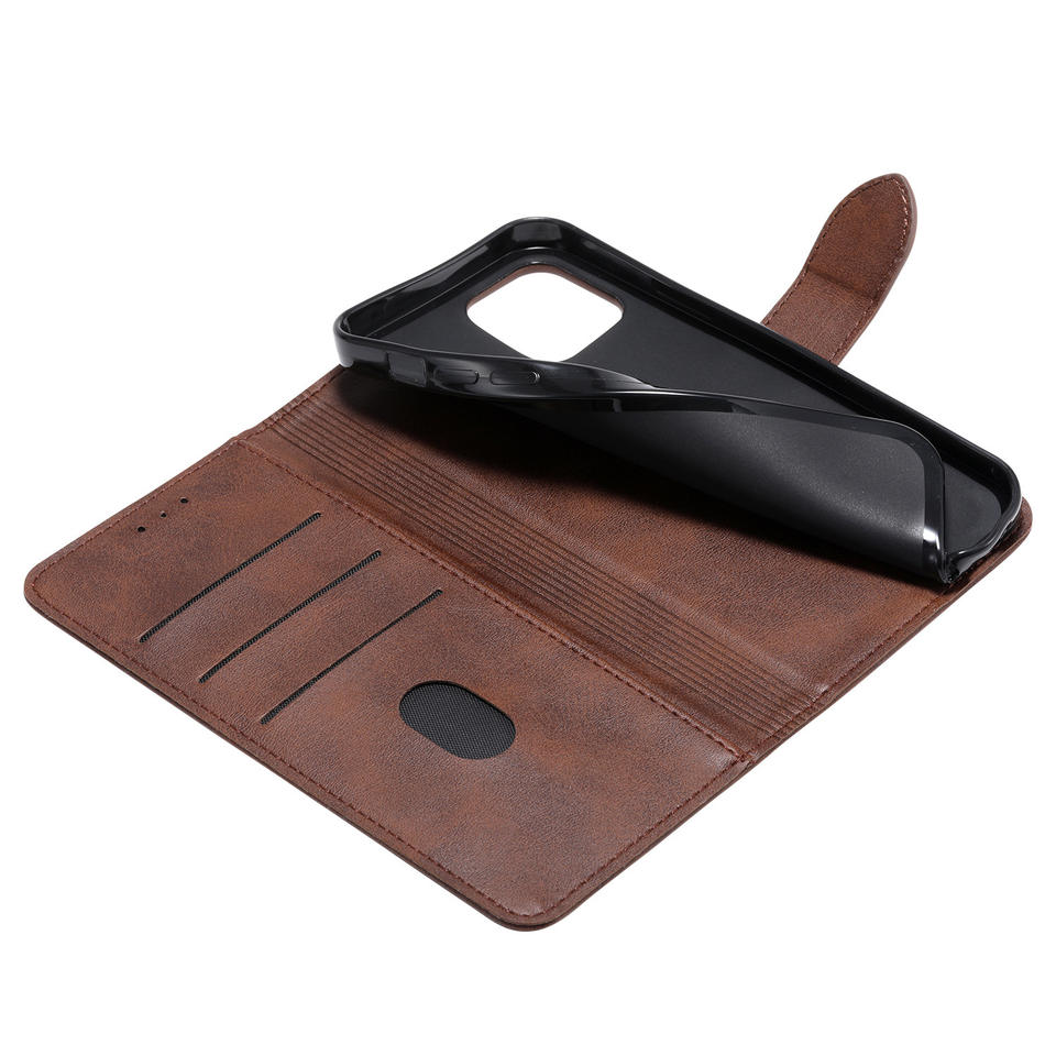 Funda de Teléfono Tipo Cartera con Ranuras para Tarjetas, Magnética, Invisible, Plegable, con Textura de Grano, Hecha a Mano, para 17 Pro Max