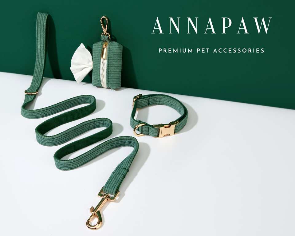Conjunto de Corbata de Pana Verde Bosque Hecha a Mano, Collar y Correa Personalizados para Perro con Nombre Grabado para Regalos de Cumpleaños