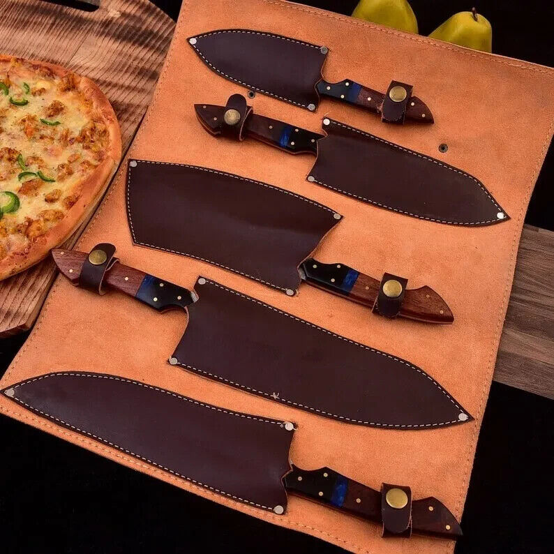 Juego de chef de acero damasco forjado hecho a mano, cuchillos de cocina japoneses profesionales con corte personalizado VG10 y mango de madera Pakkah, 5 uds.
