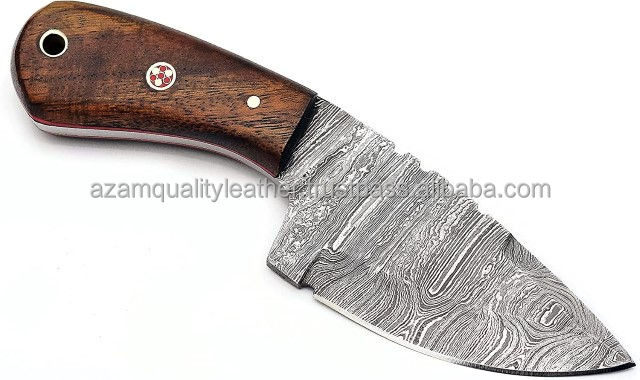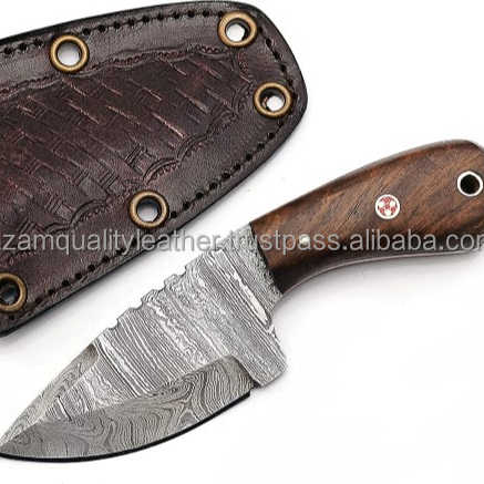 Cuchillo de Caza de Acero de Damasco Forjado a Mano, Cuchillo de Hoja Fija con Funda de Cuero para Bolsillo Táctico de Exterior